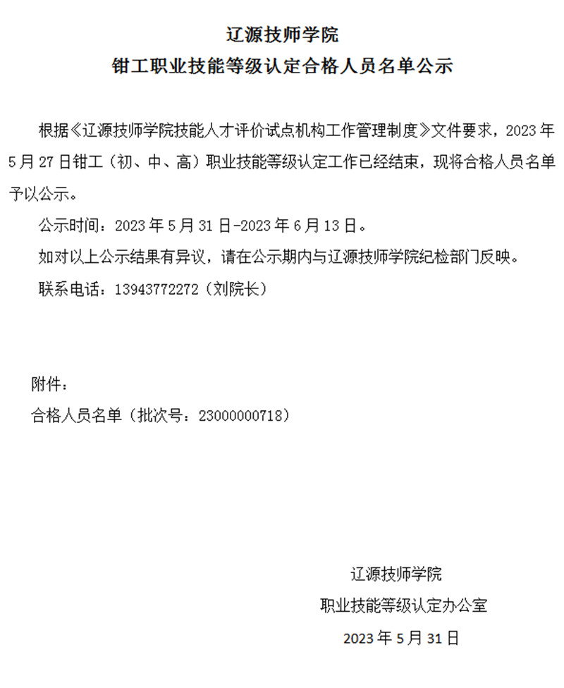 遼源技師學(xué)院 鉗工職業(yè)技能等級認(rèn)定合格人員名單公示